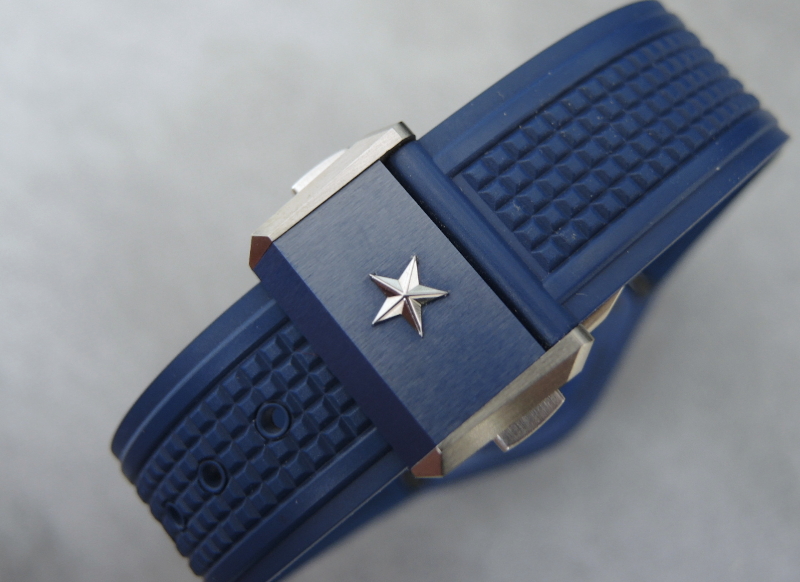自動巻き。タイムグラファー平置きで日差約±15秒。100m防水。ラバーに若干のべたつきを感じます。